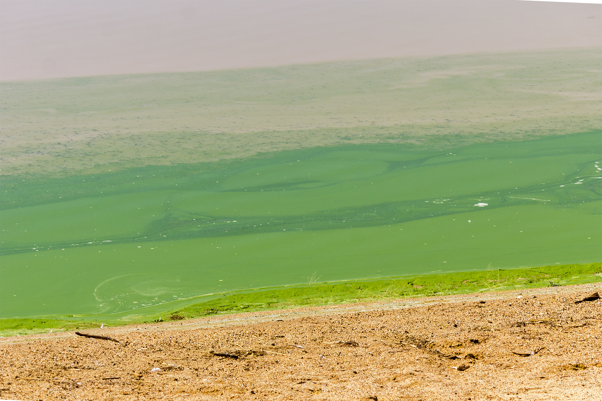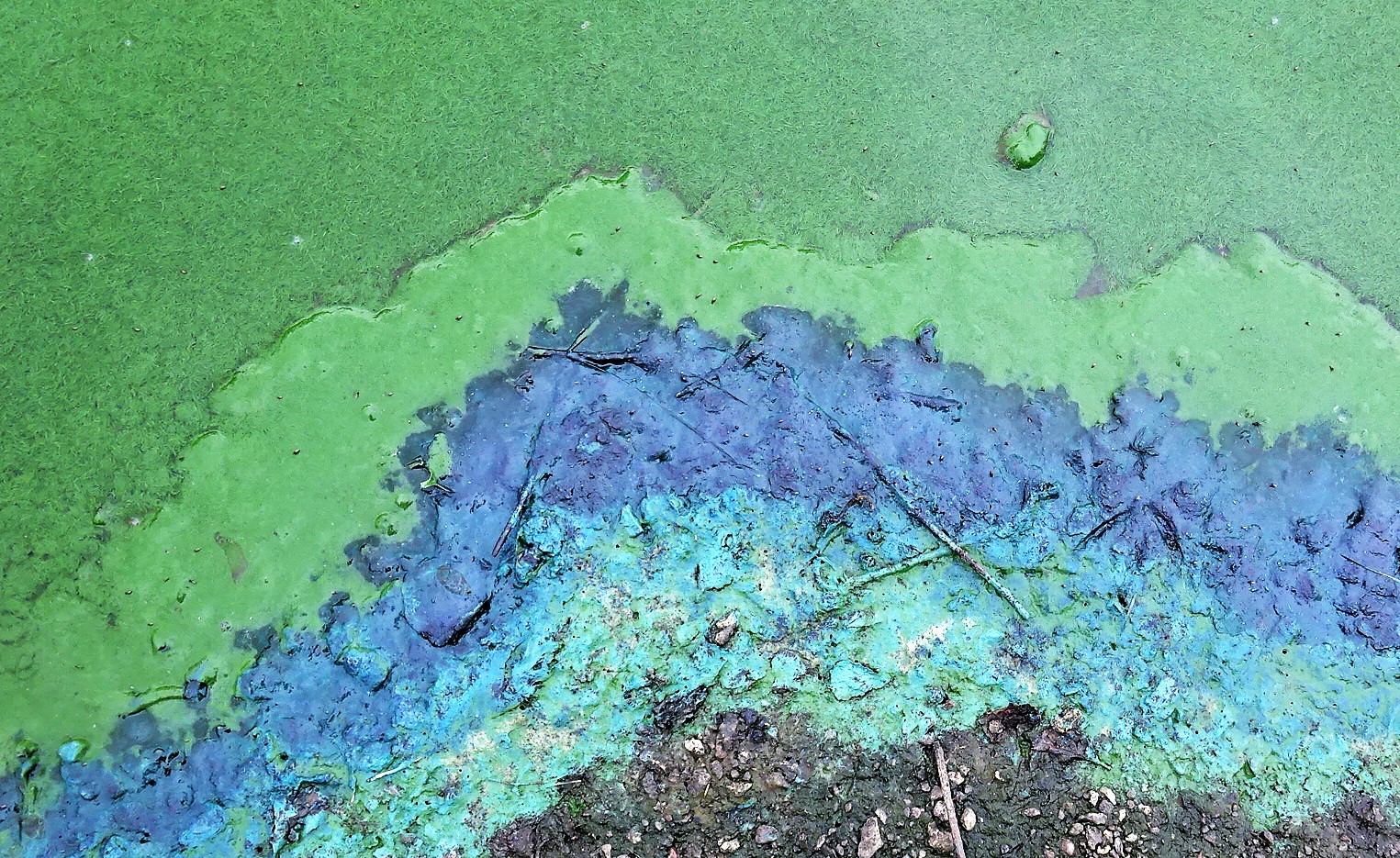 These harmful blooms, found in both freshwater and saltwater environments, contain cyanotoxins that pose serious risks to pets and wildlife if ingested. Exposure can lead to symptoms such as nausea, diarrhea, and difficulty breathing. True to its name, this algae often appears as a blue-green slick across the surface of warm, stagnant ponds. While some blooms are dense and widespread, others may be more subtle—covering only small areas with minimal visible algae.