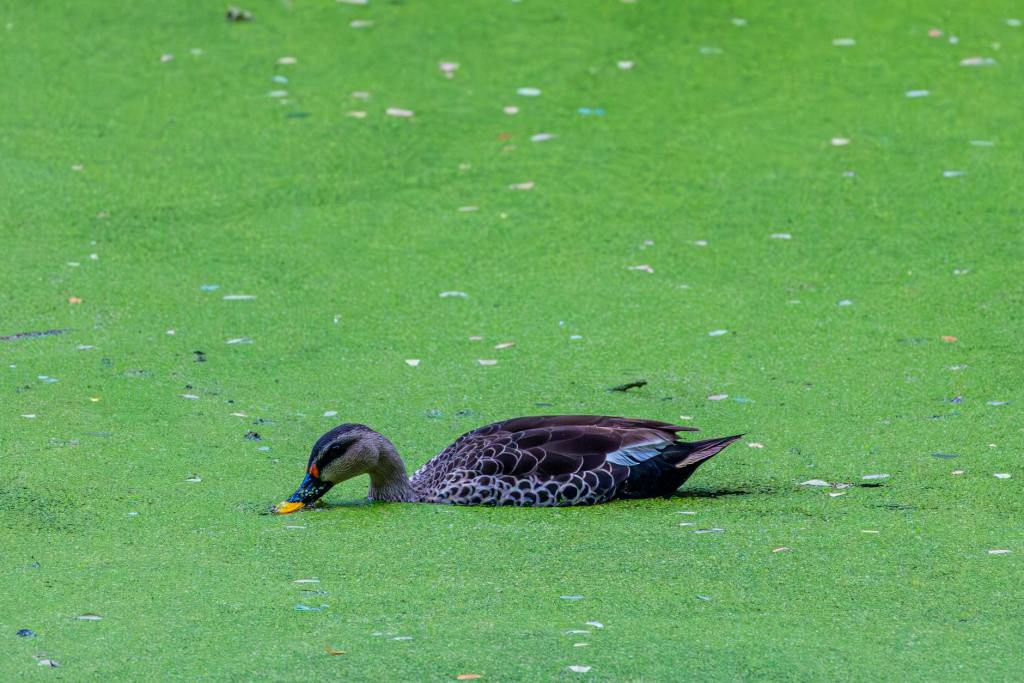 Microscopic algae typically remain suspended near the surface of the water column. Their blooms can appear in various colors, most often resembling pea soup green, though brownish hues are also common. These tiny organisms absorb nutrients directly from the surrounding water, meaning their growth and reproduction are closely tied to nutrient availability. Ponds frequently accumulate nutrient-rich runoff from nearby yards, roads, and agricultural fields, which often leads to prolific growth of planktonic algae.